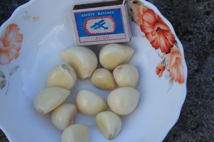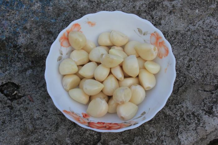Добавил молотого чесночка. Это он очищенный, но еще целый.