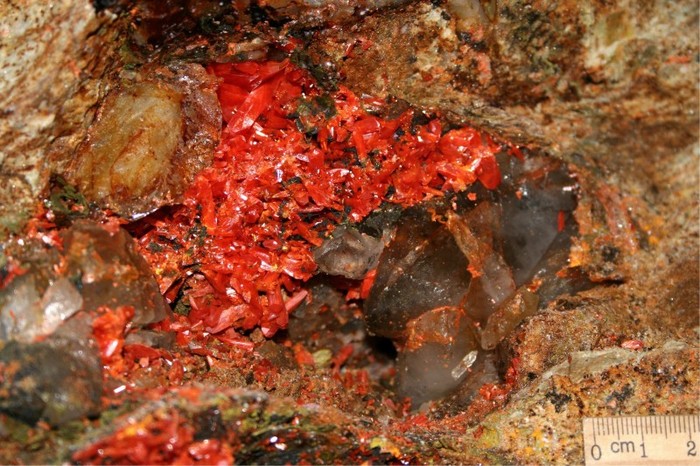 Крокоит (др.греч. κρόκος — шафран). Синонимы: красная свинцовая руда, хромат свинца. Химическая формула PbCrO4.