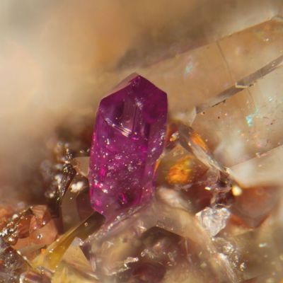 Кеммерерит/клинохлор. Синонимы: родохром или хромовый хлорит. Фиолетовый или красный минерал из группы хлоритов. Химическая формула: (Mg,Fe)5Al[AlSi3O10](OH)8.