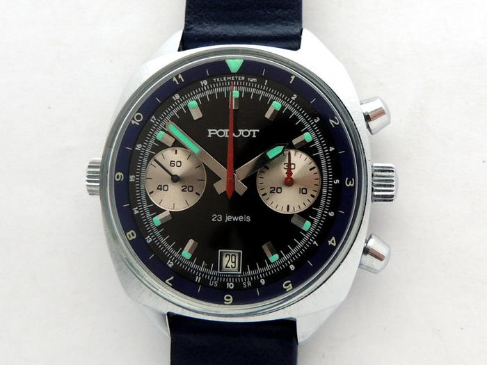 Через несколько лет (по некоторым данным в 1983 году), хронографы на базе 3133 обзавелись гражданским оформлением, и поступили в свободную продажу под маркой "Полет". Экспортный вариант назывался все так-же сурово - "POLJOT". Гражданские "Полеты" как правило выпускались уже в хромированном корпусе. По традиции, я больше всего тащусь от черного оформления:
