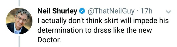 "Я действительно не думаю, что юбка помешает его решению одеться новым доктором"