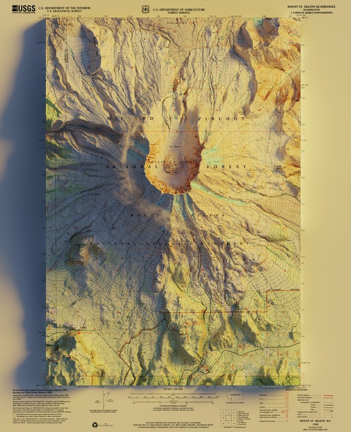 Карты Интересное Топография Художественная карта Длиннопост Вулкан Сент-Хеленс Монблан Вулкан