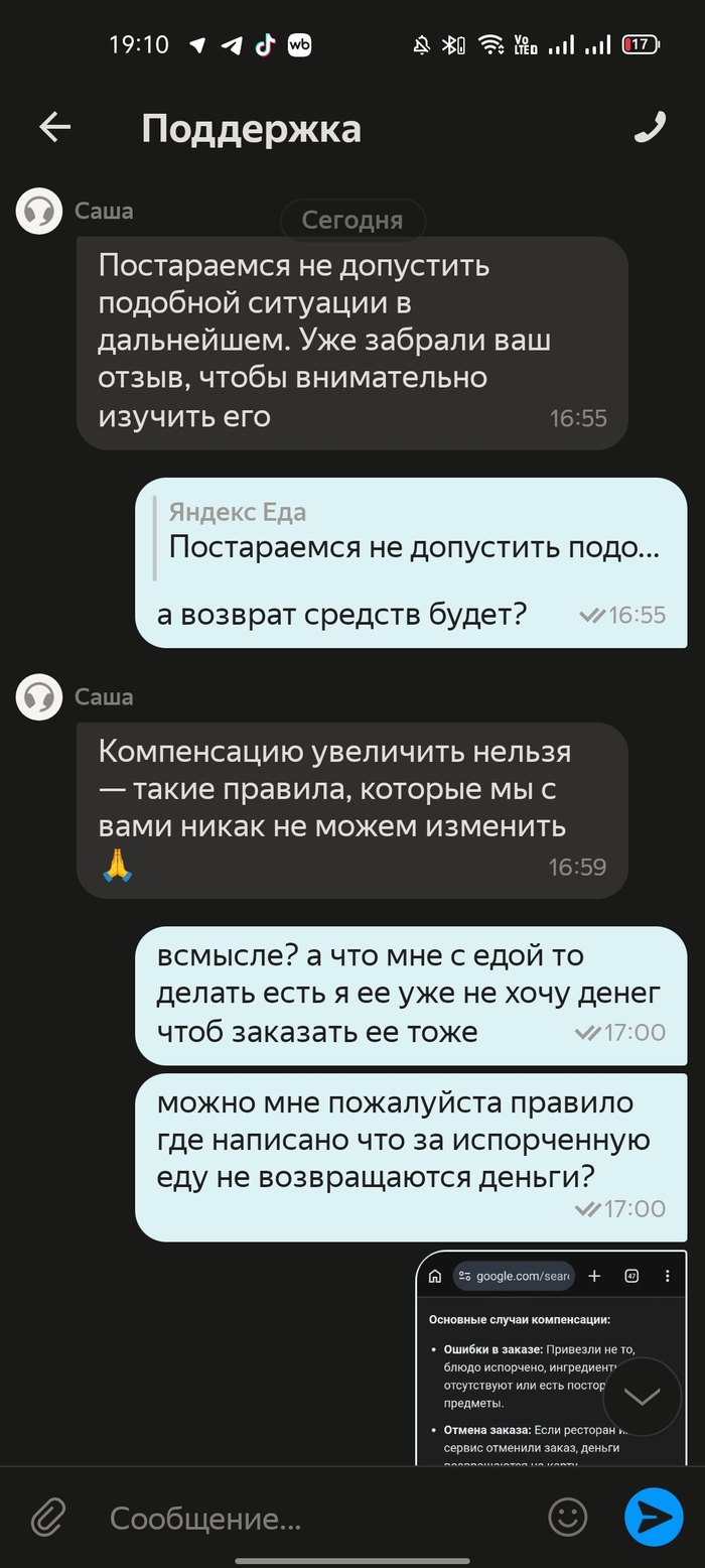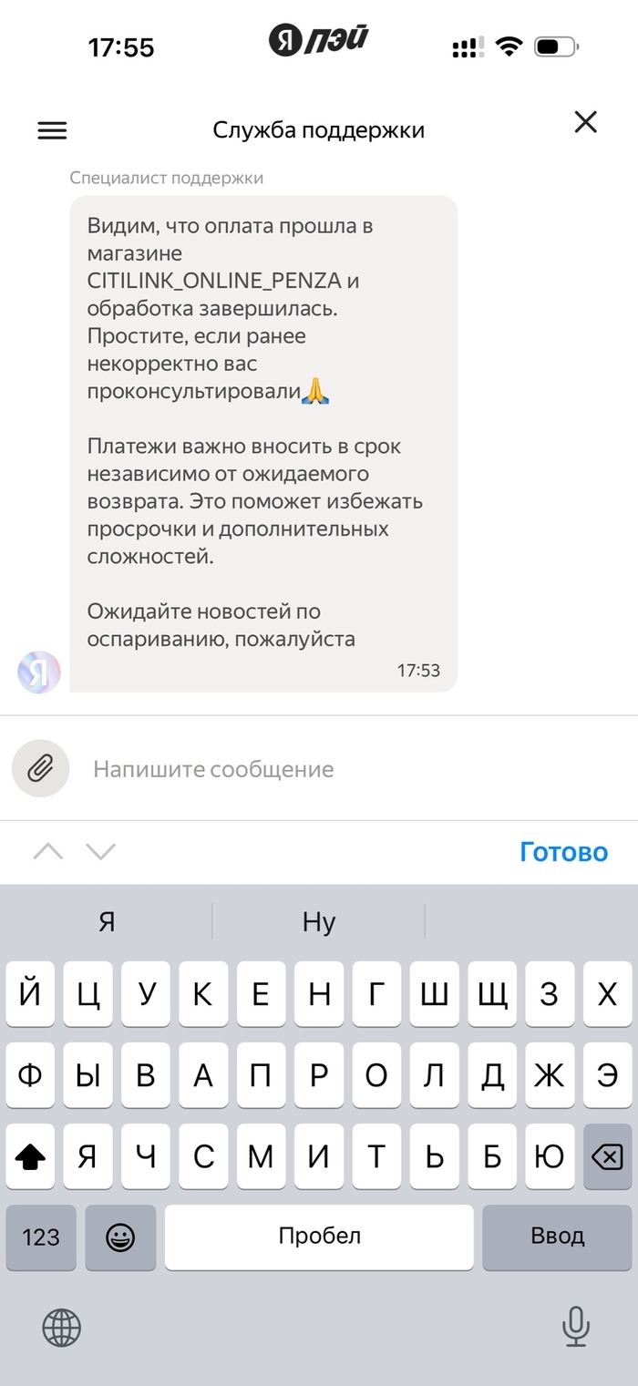 Мне ответил сотрудник, которому я объяснил ситуацию, рассказал что у меня подключена страховка "полное спокойствие" и все что происходило.