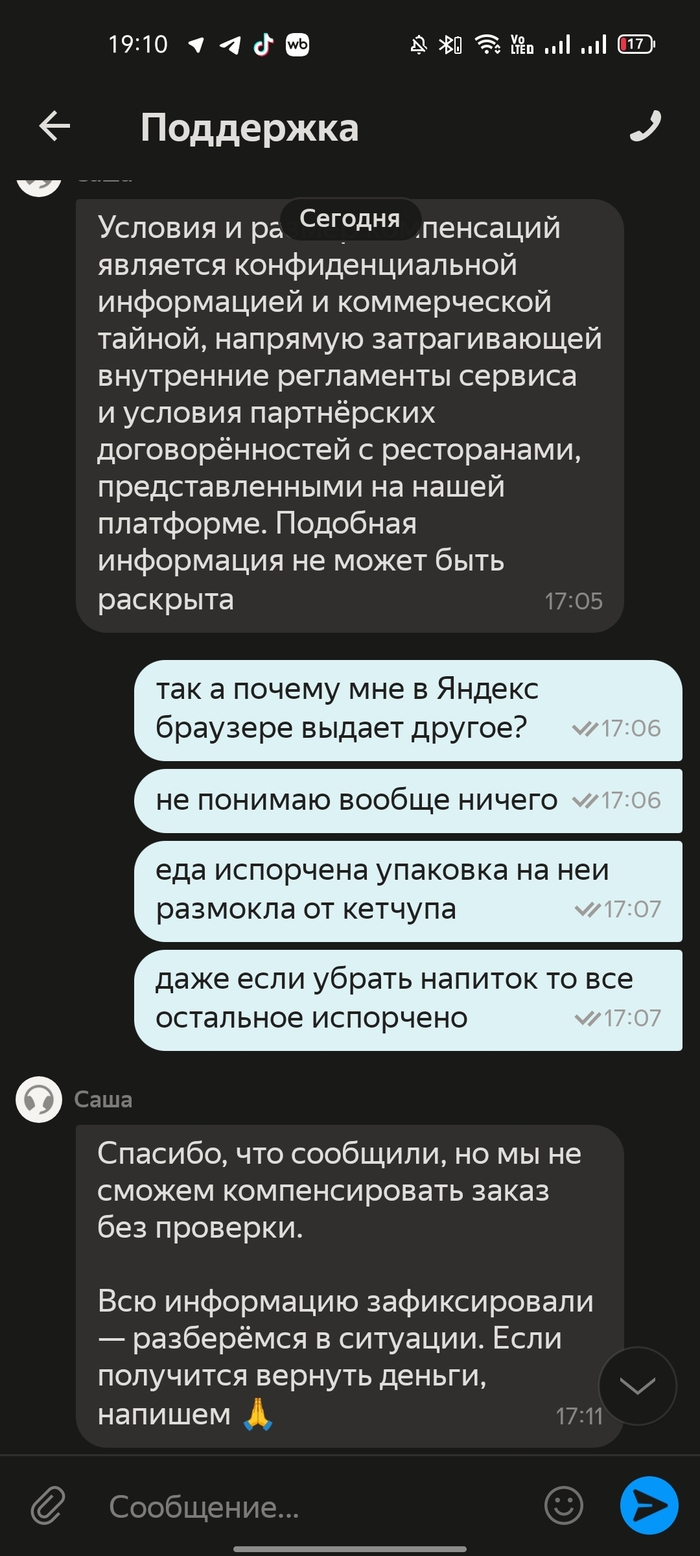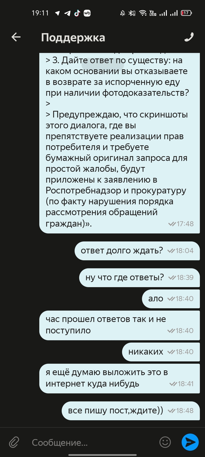 Более чем через 2 часа ожидания от первого звонка, не получив помощи в чате, я повторно позвонил в поддержку.