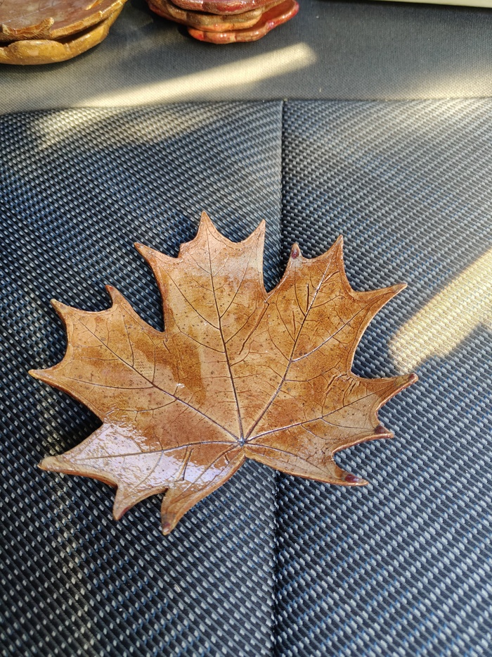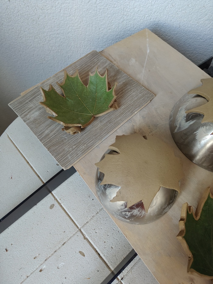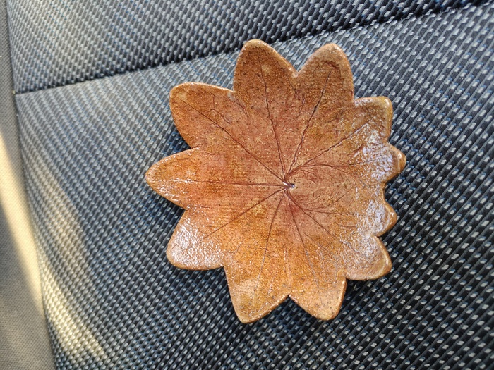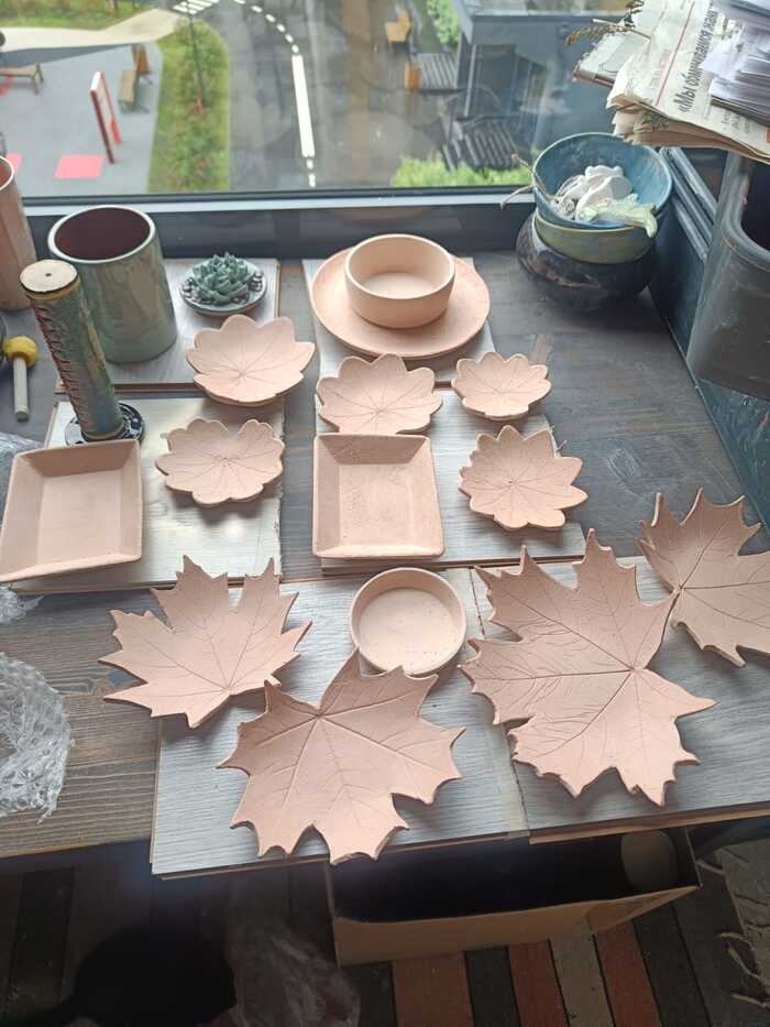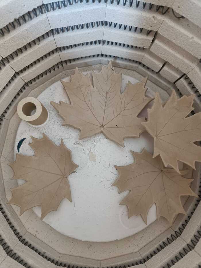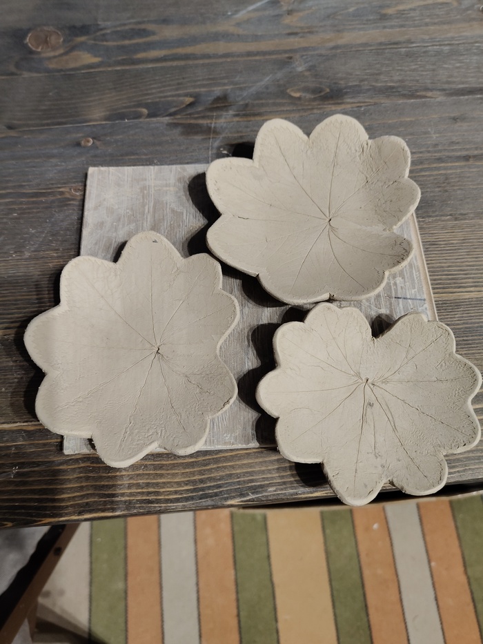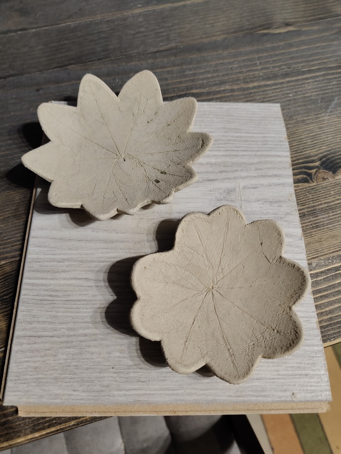 3) Оставляем на естественную сушку изделия, перед утельным (первичным) обжигом снимаем листики. Если что-то по мелочи останется, то не критично, так как в печи выгорит.