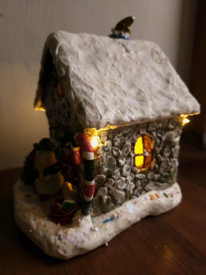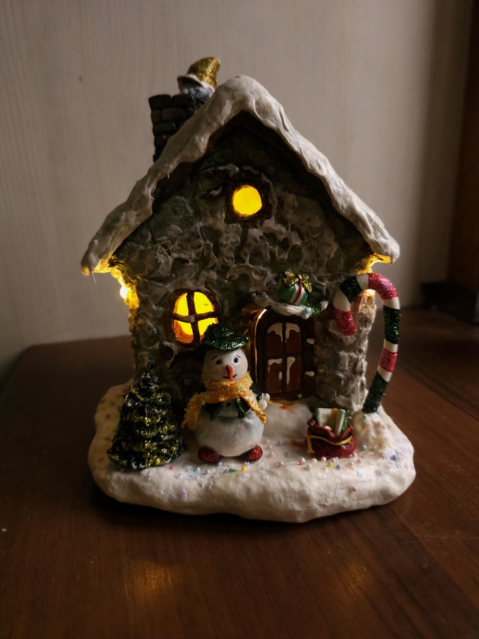 Самый большой вопрос был в подсветке, но с этим справилась гирлянда, которую я спрятала внутри и провела вокруг домика.