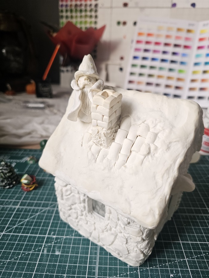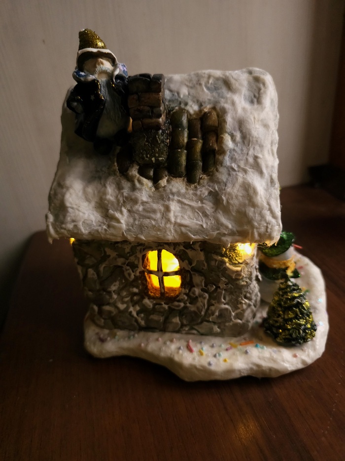 А теперь почему я это сделала.У компании Lemax есть целая новогодняя линейка миниатюрных домиков и фигурок. Очень красиво и очень дорого. Все эти домики с ноября уже украшают витрины, завораживая тех, у кого детские гештальты с игрушками не закрыты. Пришла я вот так в магазин за таким домиком, а меня ждало разочарование. Не, я понимала, что все изделия производятся массово и в Китае. Тут не должно быть высоких требований к продукции. Но когда консультант несколько домиков при мне распаковал, то мне стало так жаль, потому что где-то фигурка отвалилась, где-то соплями (простите) висел клей. Я выбрала уже домик, но при мне там перестал гореть фонарь. И все это вроде бы такая мелочь, но когда речь заходит про волшебство (которое и так поддерживать после 30 лет довольно сложно), то включилась уже принципиальность. В общем, из магазина я вышла без игрушки, но с твёрдым намерением сделать свой милый домик.