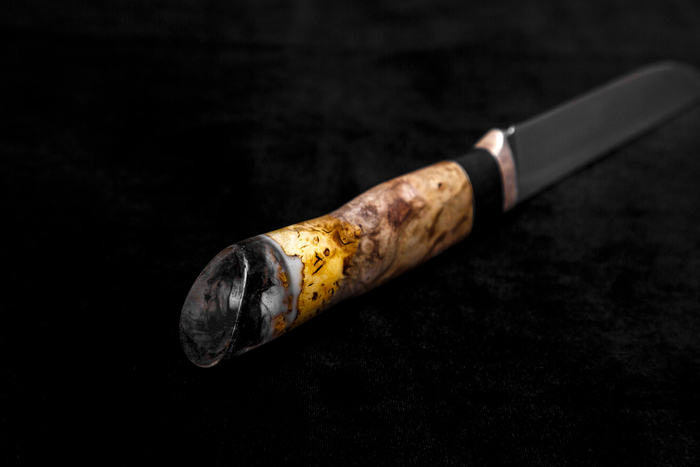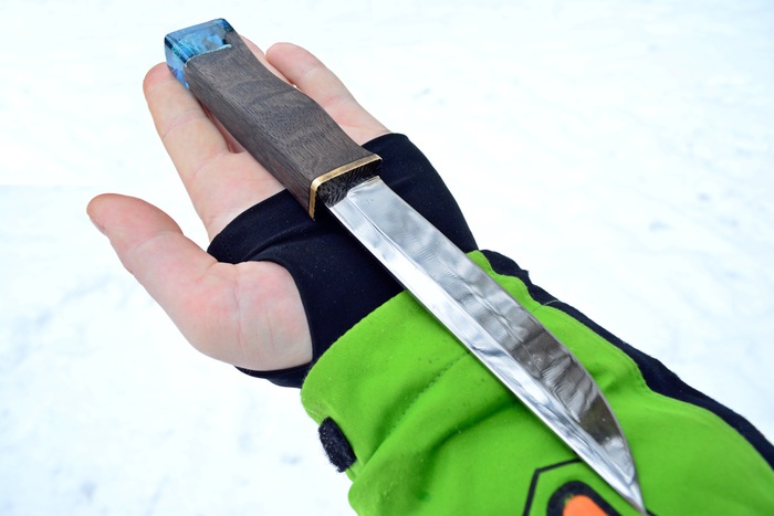 Причины такой популярности совсем не удивительны. Х12МФ сочетает хорошую стойкость режущей кромки с приличной механикой и коррозионной стойкостью. К тому же, сталь достаточно технологична и при минимальном навыке обеспечивает получение приемлемых характеристик. А в авторском исполнении нашими мастерами РусБеръ может тягаться на равных с самыми современными сталями.