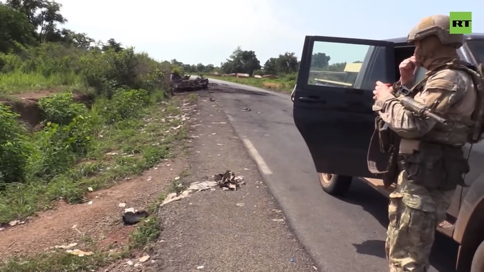 Три бойца российских военизированных формирования и два офицера полиции Центральной Африки были убиты в четверг в результате взрыва взрывного устройства на северо-западе Центральноафриканской Республики, разоренной гражданской войной, сообщил в воскресенье AFP официальный представитель правительства Анж Максим Казагуи. « Трое россиян и два офицера полиции Центральной Африки были убиты, есть ранения», - сказал Казагуи. Военная колонна подорвала взрывное устройство на обочине дороги между Берберати и Буаром, более чем в 400 км от столицы страны Банги, согласно источникам ООН.