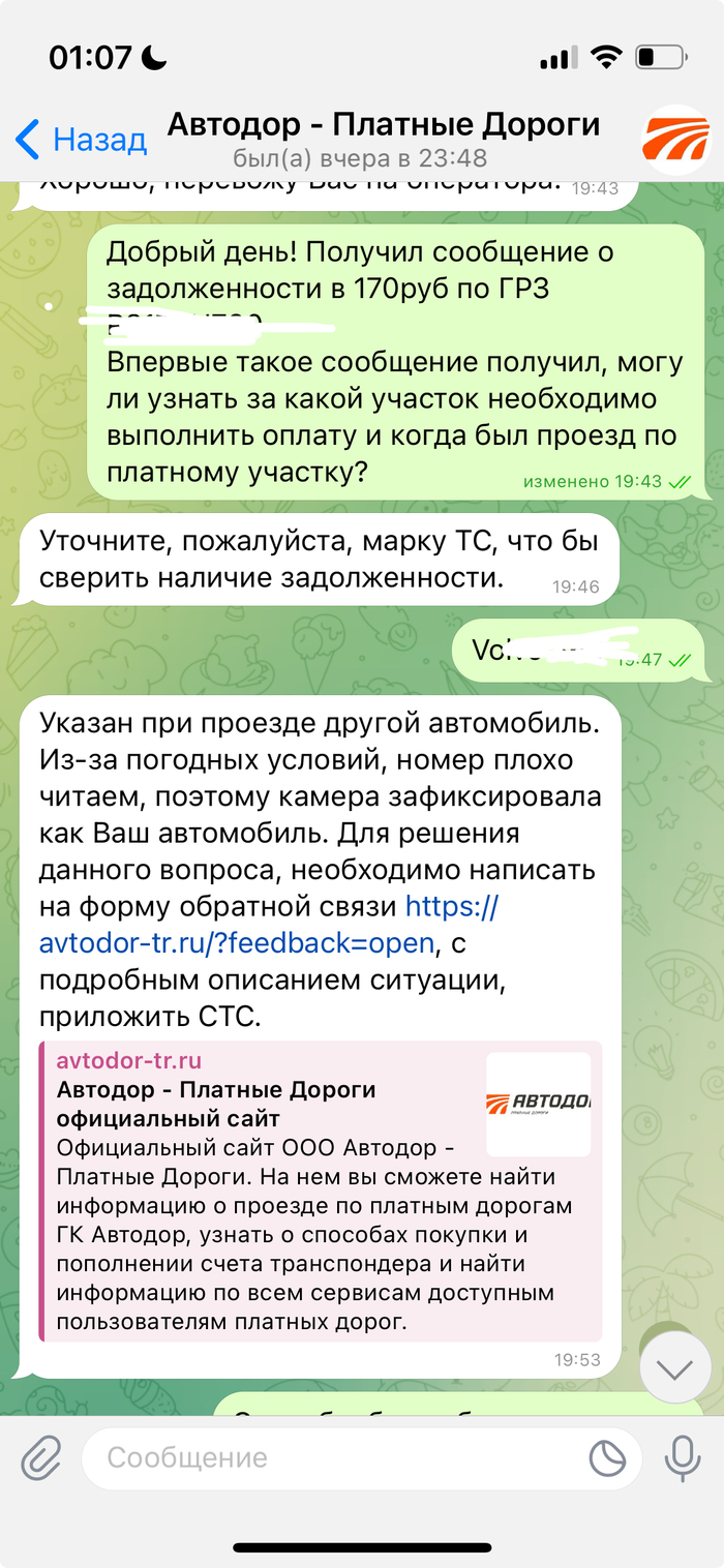 Сегодня антиспам сообщил в смс, что пропущен звонок с голосовым и предложил его прослушать. Сделал так впервые и, видать, не зря. Суть - задолженность и необходимость оплаты за проезд по платным дорогам, кроме того робот говорил, что в распоряжении несколько дней, иначе еще 5к сверху штраф. Сообщение смутило, тк в течение последних 6 месяцев по таким дорогам не ездил.
