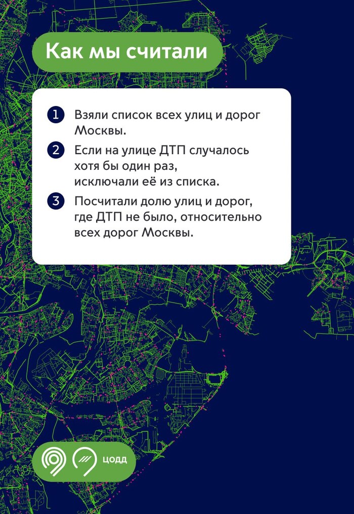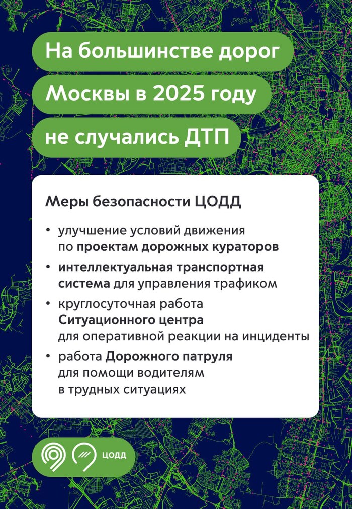 На большинстве улиц и дорог Москвы с начала 2025 года не было ДТП с пострадавшими