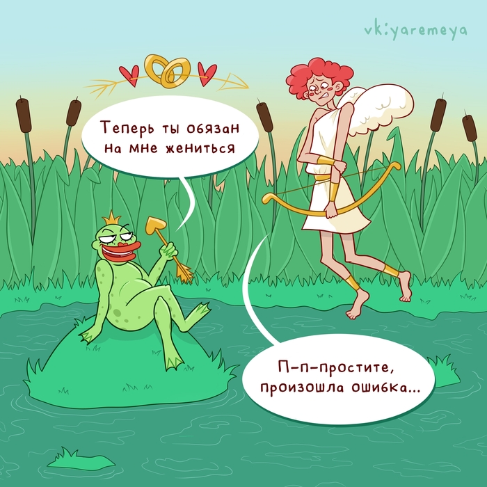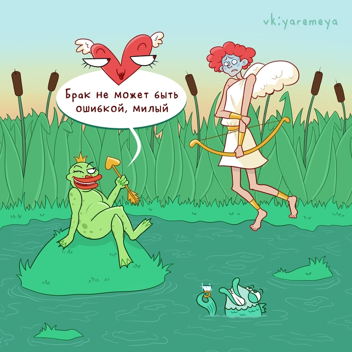 Как стрелы пускать во все стороны, так они первые. А как ячейку общества создавать, так ошиблись сеттингом...Не выйдет, товарищ Купидон — не в ту попали! (Год семьи прошел, но комикс мне все еще нравится)