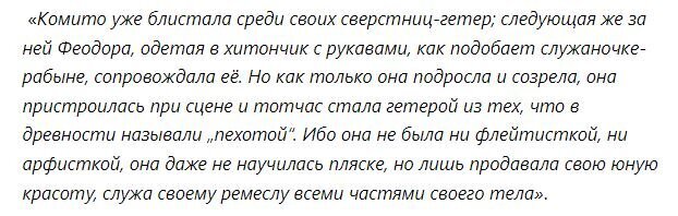 Вот как византийский историк Прокопий рассказывал об участии Феодоры и ее старшей сестры Комито в представлениях мимов: