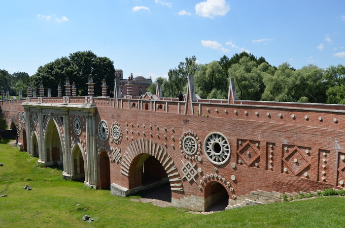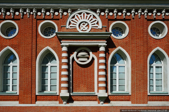 Звезды, серп и молот, нечто напоминающее лучезарную дельту и мальтийские кресты. Все эти знаки хорошо видны на зданиях и мостиках Царицыно.