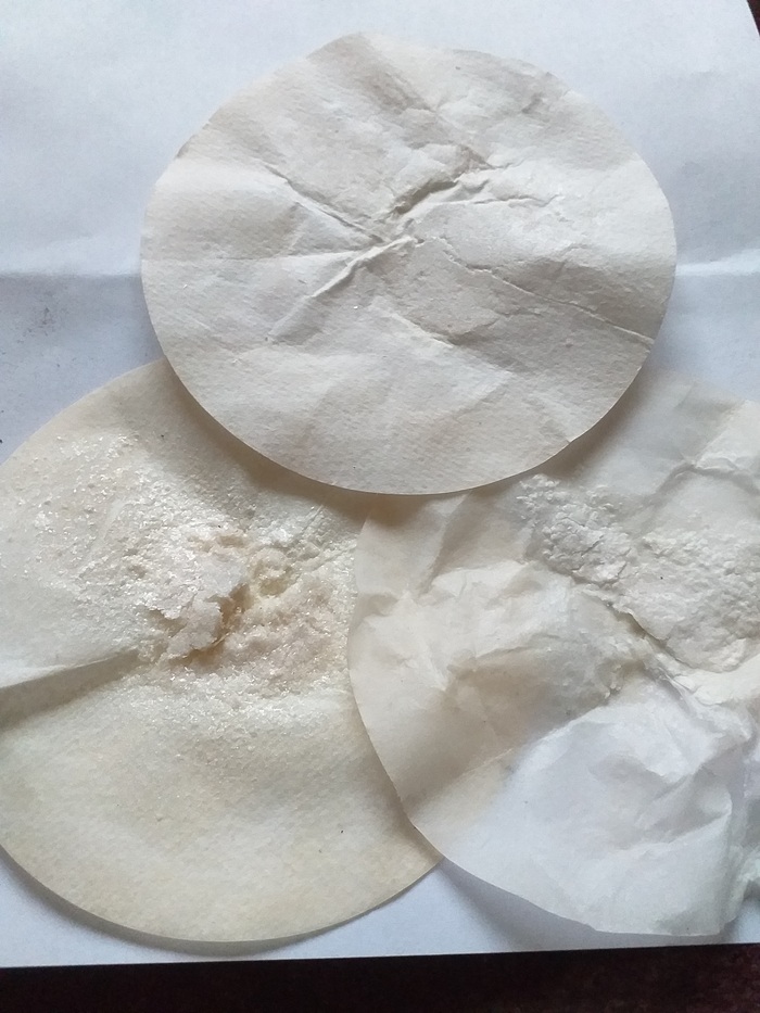 И вот решил я проверить, действительно ли в табачном пепле содержится драгметалл. На работе имелась курилка и как то ночью я выгреб пепла примерно на два спичечных коробка. Дома залил пепел водой и прокипятил. Получил раствор калийной щёлочи рН-12. Вспомнил как при посадки картошки на дачу старался побольше пепла подсыпать, бедная картошка. Дальше промыл пепел водой и залил раствором азотной кислоты. Прокипятил, слил. Залил соляной кислоты и добавил немного азотной. Прокипятил. Слил раствор царской водки и немного упарил. Погасил азотку карбомидом и зачем то добавил еще водки, для более надежного удаления азотки. С помощью хлорида олова проверил на золото, ничего. Ладно, решил дальше упаривать. Постоянно выпадали какие то белые соли, приходилось подолгу фильтровать, затянулось на несколько часов.