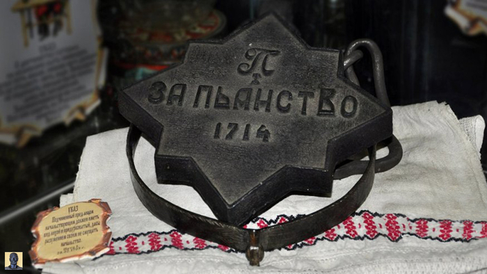 Существует версия, что в 1714 году Петр Первый учредил чугунную медаль «За пьянство» или «Медаль за невоздержанность в питии». Весила она 6,8 кг (не считая веса цепей, что уже почти 8кг), носить ее надо было неделю, не снимая. Но это не подтверждается доступными историческими источниками и академическими исследованиями. Хотя, по характеру Петра, это вполне могло и быть. Зато доподлинно известно, что медаль за пьянство надевали в качестве наказания на заводах Демидовых.