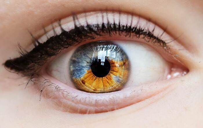 Светло-коричневый или янтарный оттенок в комплексе с голубым цветом создают самый редкий цвет глаз, который содержит пигмент липохром.