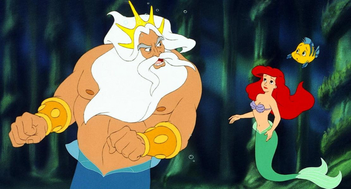 Таким образом общая картина не противоречит друг другу и у них под водой всегда "солнечно". А значит единственный вариант для существования светлокожей русалочки - быть альбиносом, что и подтверждают зеленые глаза и рыжий цвет волос. Также заметно, что и нептун гораздо более загорелый, нежели дочка