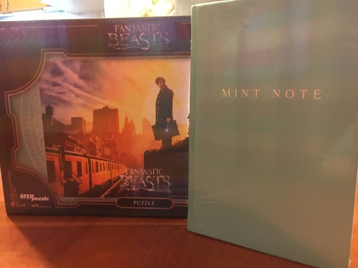 в подарке был пазлс предводителем Фантастических тварей и...................МЯТНЫЙ Блокнот! (у меня указано в профиле, что питаю к блокнтам особую слабость))