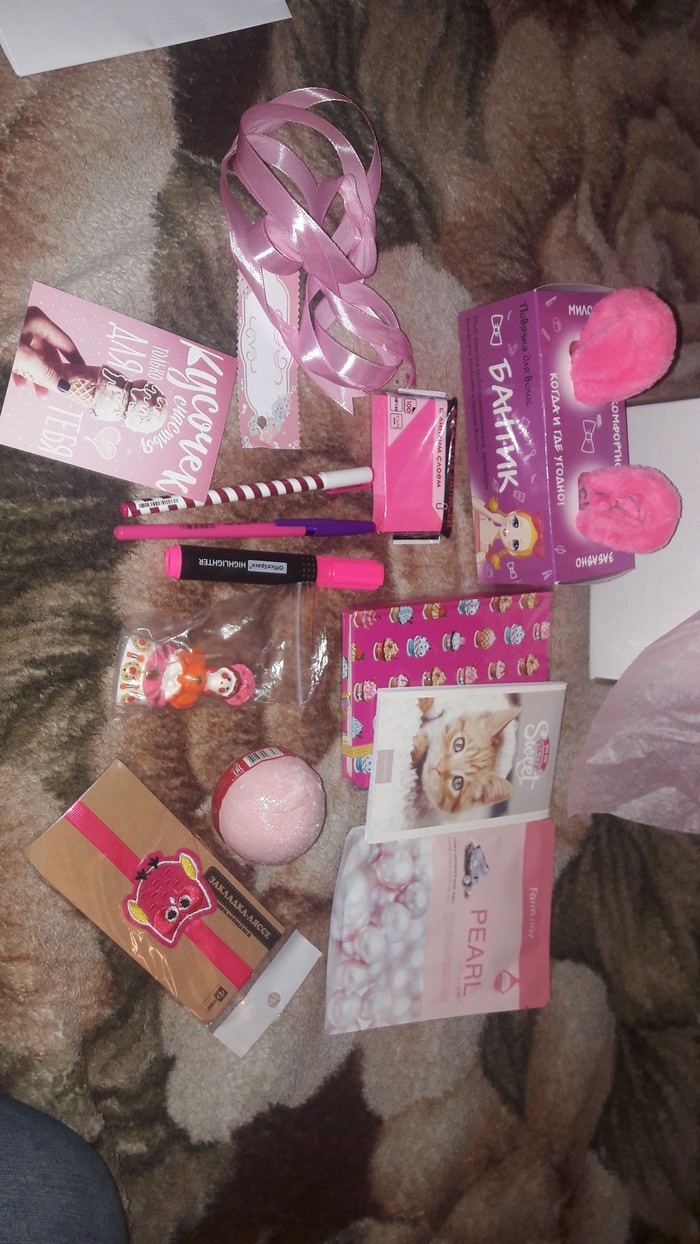 Помимо этого в посылке ещё вкуснючие леденцы, которые я тут же закинула в рот, и шоколадный батончик, конфискованный моим молодым человеком. Не забыли и про кота - для него консервы (я именно такими его балую иногда). А также кулон в виде символа мира весь в цветах, прищепки на морскую тематику и декор для скрапбукинга (тут пришлось залезть в гугл). Конечно, не обошлось без записки от отправительницы, но это личное) Я обязательно ей отвечу и, надеюсь, мы продолжим общение, ведь, по её заверениям, у нас много общего. И я ей верю, судя по тому, как она грамотно подобрала подарки.