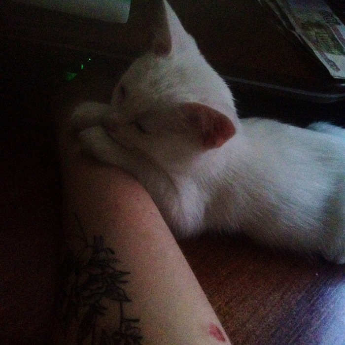 А вот и кот с консервой. Он, правда, дурак, так что не понимает, что в этой жестянке вкусняшка.