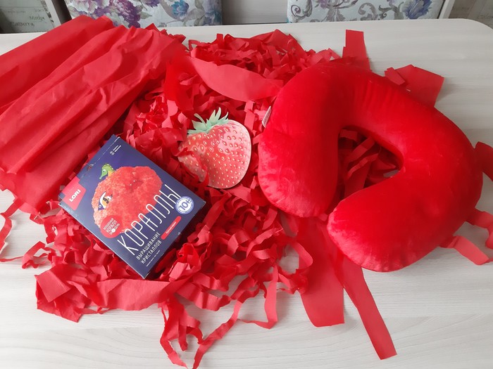 Копаем глубже.... и вот замечательная подушечка для путешествий (все любят путешествия), увезу на работу, буду отдыхать в перерывах между пациентами ). В точку попали с подставкой под горячее, все никак не куплю эту необходимую мне на кухне вещь. Отдельное спасибо за кристаллы-коралл, будем с детёнышем выращивать, он очень обрадовался, что ему тоже достался подарочек.