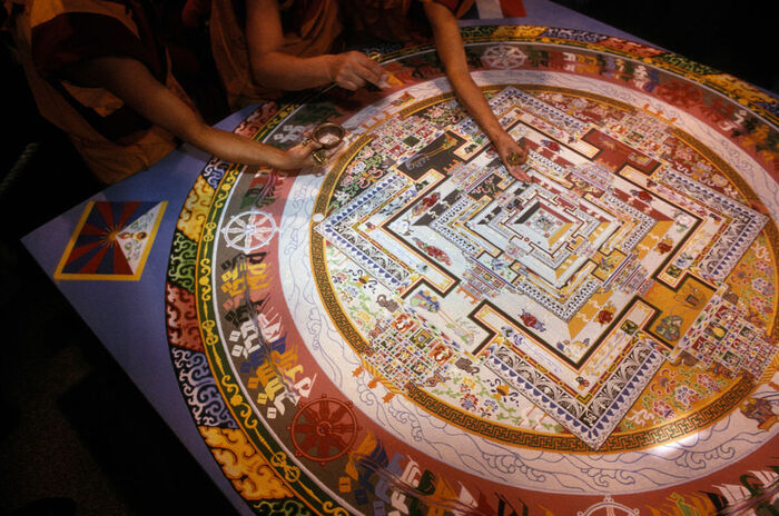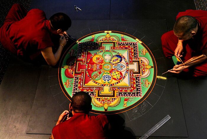 Раньше ритуалы, частью которых было построение божественных дворцов, изучались только в стенах тибетских тантрических монастырей и не были доступны широкой публике. Мир многое узнал о мандалах только после присоединения Тибета к Китаю: тогда многие монахи и миряне во главе с юным Далай-ламой XIV покинули родину и нашли приют в Индии.