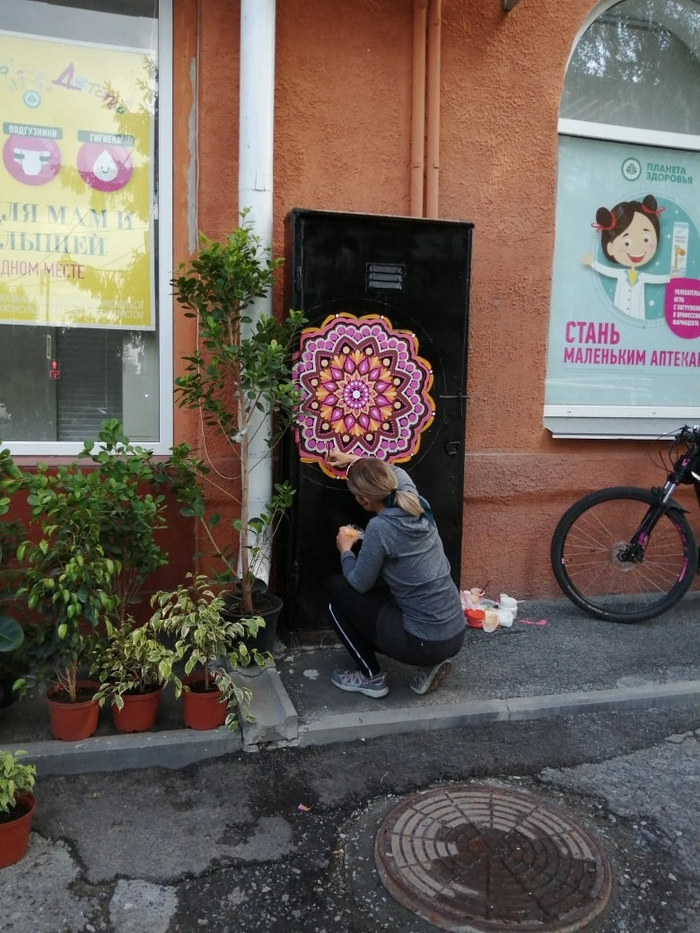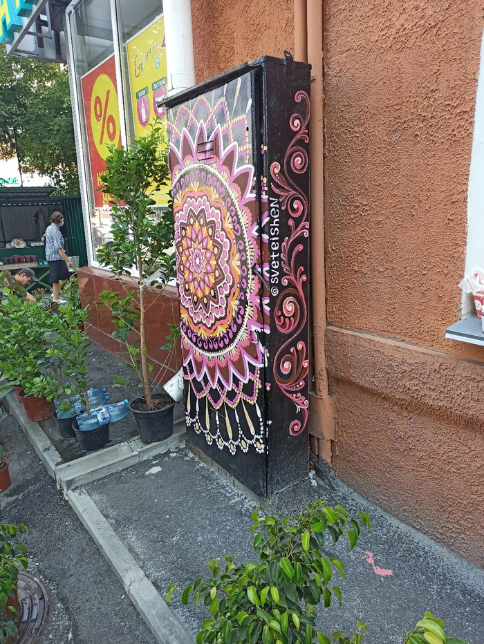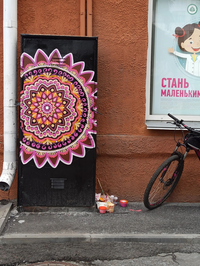 В рамках проекта " Арт-шкафы" мне предложили изобразить одну из моих ранее нарисованных мандал на телекоммуникационном шкафу на пересечении Гоголя-Кирова.