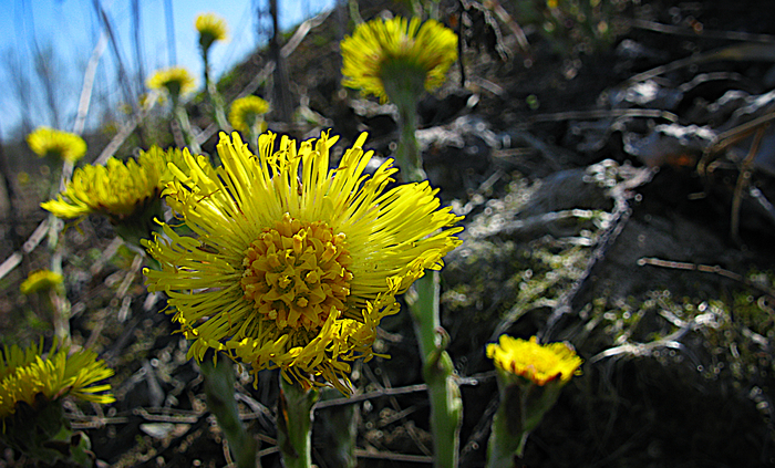 Летом то оно как - лопухи с полметра растущие по берегам рек, где повлажнее. А ранней весной, как пригрело, залупундрики вылезают. Очень кайфовые! В парке Павловска обильно растут вокруг Фасадного пруда, вдоль реки Славянки. Белокопытник гибридный (Petasites hybridus) - близкий родственник знакомой всем с детства Мать-и-мачехи.