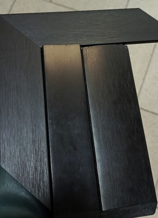 Спасение пришло оттуда, откуда не ждали: нам помогла мастерская, которая обслуживает художников и багетные мастерские по всей Москве (очень невзрачное помещение в промзоне). Филигранная работа Мастера и профессиональное оборудование позволили получить безупречные срезы. В совокупности на резку багета я потратила около 2-х недель (бегать по Москве с рейками по 160см то еще приключение!)