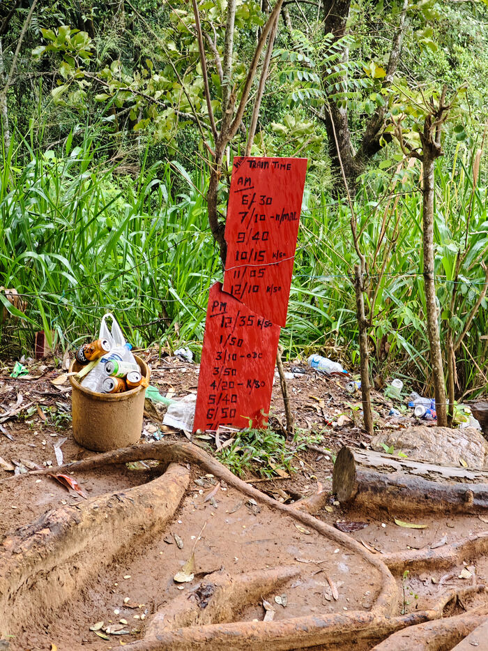 В интернете и на месте можно найти расписания поездов, проходящих через мост, но они вряд ли нам помогут, ведь местные железные дороги существуют вне времени.