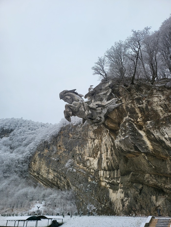 В 40км от Владикавказа из скалы на боевом коне выскакивает Георгий Победоносец!