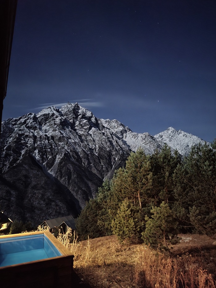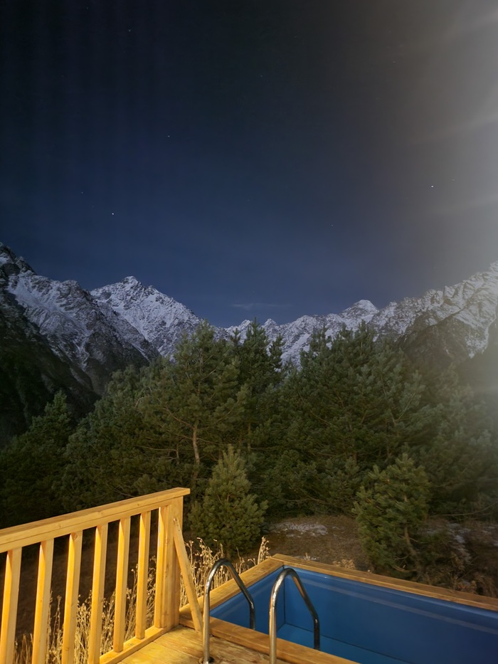 В глэмпинге Chillawi мы снимали баню, к слову удовольствие это здесь стоит 7к за 2 часа. За это ты получаешь панораму гор, прямо в парилке и бассейн на свежем воздухе.