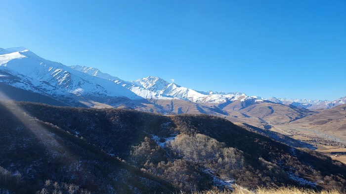 К декабрю Урал уже присыпало снегом, и казалось что на Кавказе уж снега должно быть вдоволь, это же подтверждали снежные шапки гор, просносящихся в илюминаторе по пути во Владикавказ.