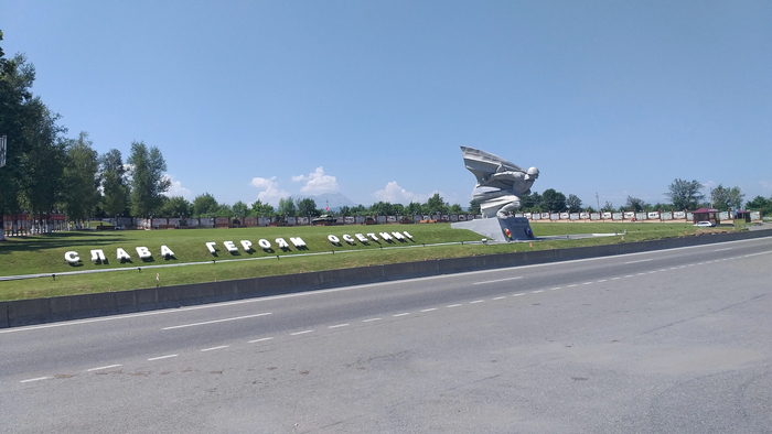 Дороги в Осетии стоят отдельного описания. Когда вы едете среди отвесных скал посреди ущелья, а рядом журчит бирюзового цвета река, не хочется ничего делать, ты просто залипаешь в окно всю поездку. Отдельное спасибо таксисту, что остановился около монумента Уастариджи. Это бог путников и его изображения можно часто встретить по всей Осетии, но тут конечно они превзошли себя.