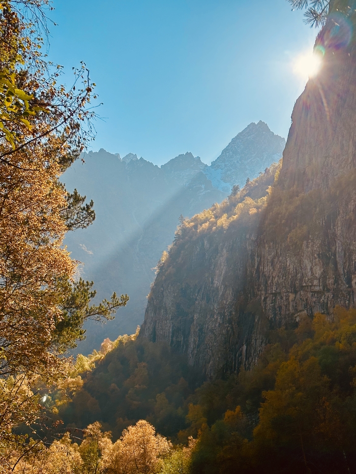 Осень сухая, большинство рек с снего-дождевым питанием сухие; течет только Цейдон от самого ледника. По тропе оборудованы лестницы переходы, когда тут полноводные притоки.