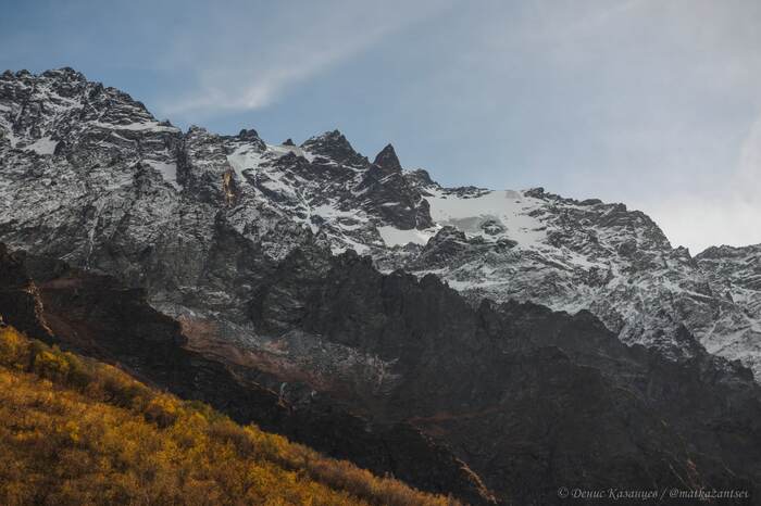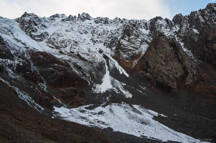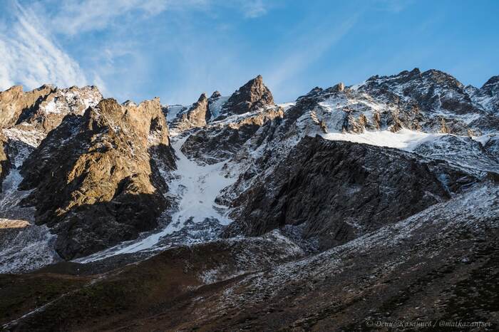 Язык громадной наледи спускается до высот 2 400 метров, а начало Сказки – перевал между пиками Лагау и Адай-Хох, находящийся на рубеже 3907 м.