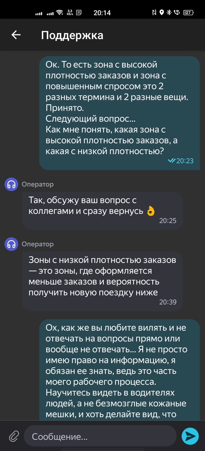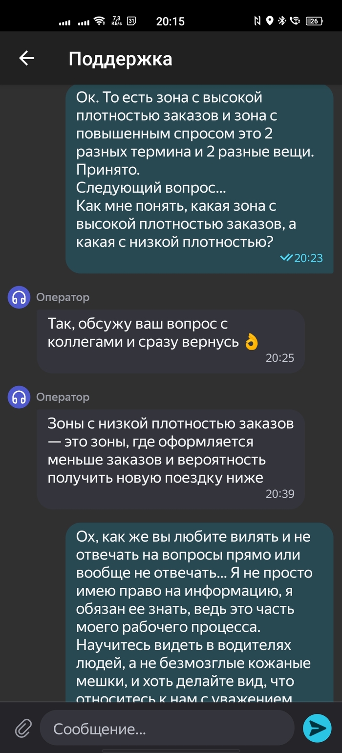 Я — потребитель их услуг (водитель), и я обязан знать и имею право знать все рабочие моменты. Но Яндекс игнорирует законодательство, игнорирует адекватность, игнорирует потребности водителей. В общем, Яндекс делает всё, чтобы показать, что ему плевать на водителей.