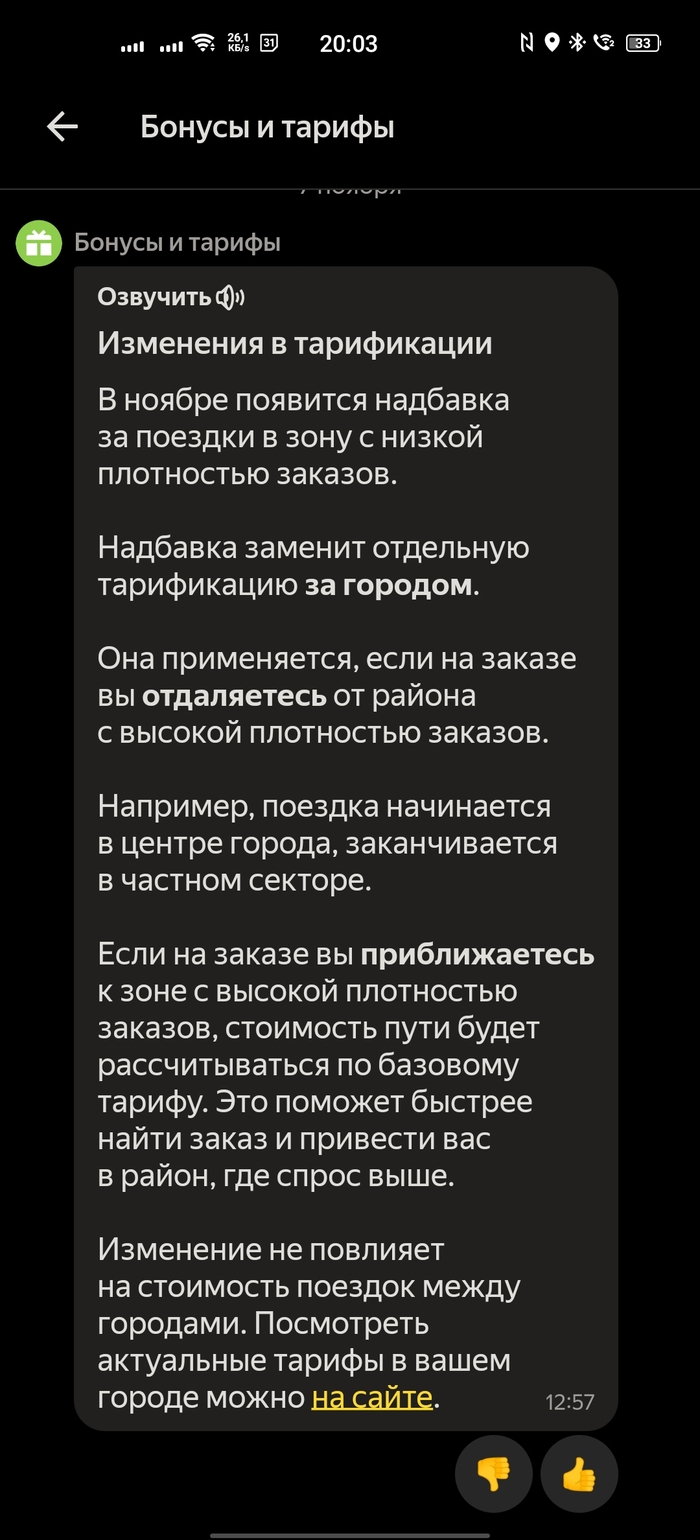 Не так давно пришло сообщение в приложении «Яндекс.Про» о том, что произошли изменения в тарификации. Смотрите: