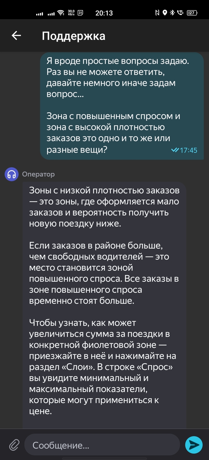 Разумеется, поддержка Яндекса была в своём репертуаре. Задаю первый вопрос, а мне в ответ присылают текст про доход и повышенный спрос. Хотя я об этом даже не спрашивал!