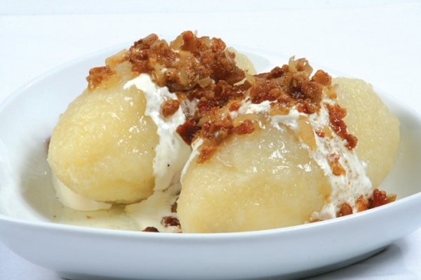 Готовые цеппелины поливаем сливочным маслом и сметаной. Можно со шкварками.