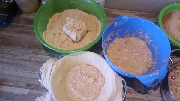 Сливаем сок, весь крахмал в тесто.