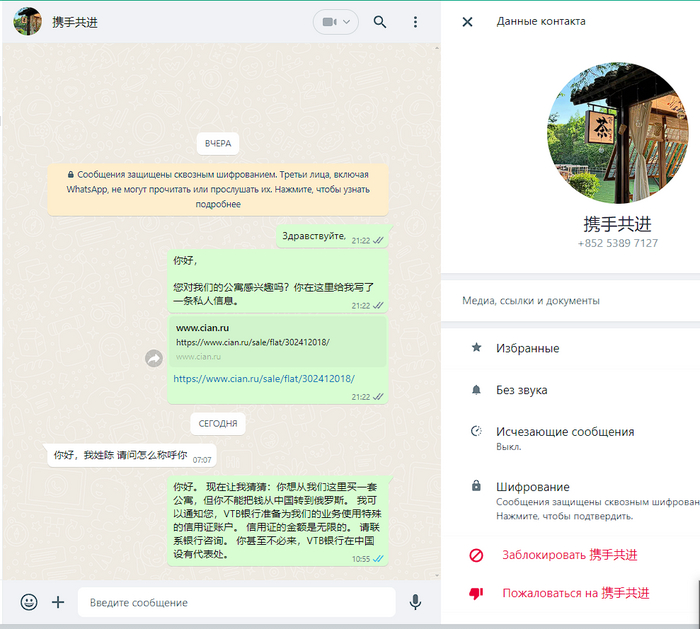 В последнее время при продаже квартир на ЦИАН я стал получать личные сообщения от китайцев, все как один оставляют мне свой контакт на ватсап и представляются Чен.