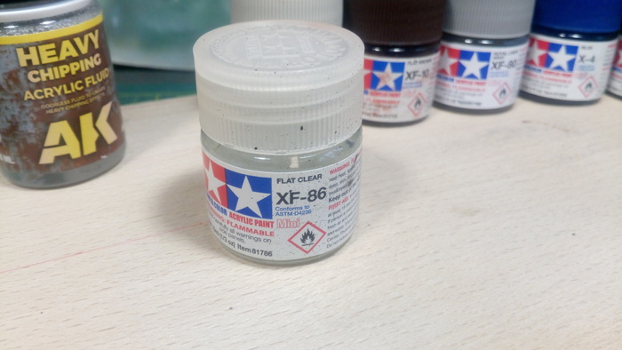Жду когда просохнет, вытираю лишние хлопья и остатки воды, протираю насухо цистерну и покрываю матовым лаком, подготовляя тем самым почву для роботы масляными красками.
