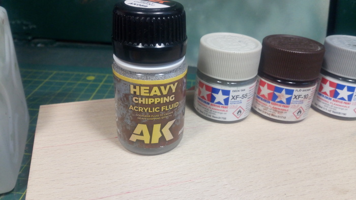 Далее после высыхания матового лака, наношу жидкость для имитации сколов краски