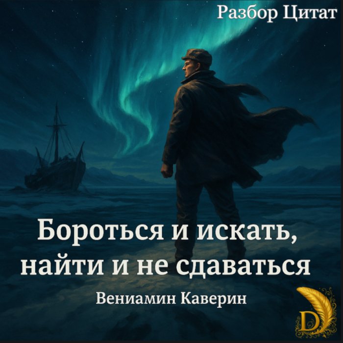 Вениамин Каверин вложил в эти слова философию целого поколения, прошедшего через войны, холод и лишения. Его герой, Александр Григорьев, живёт не ради славы, а ради смысла — ради поиска истины и верности себе.