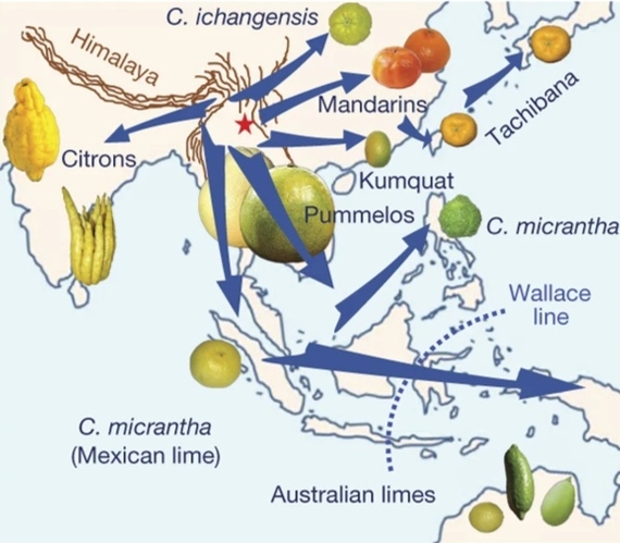 Ученые смогли определить место и время происхождения цитрусовых. Согласно генетическим данным, они появились около восьми миллионов лет назад в Ассаме (северо-восточная Индия), Мьянме и юго-восточном Китае.
