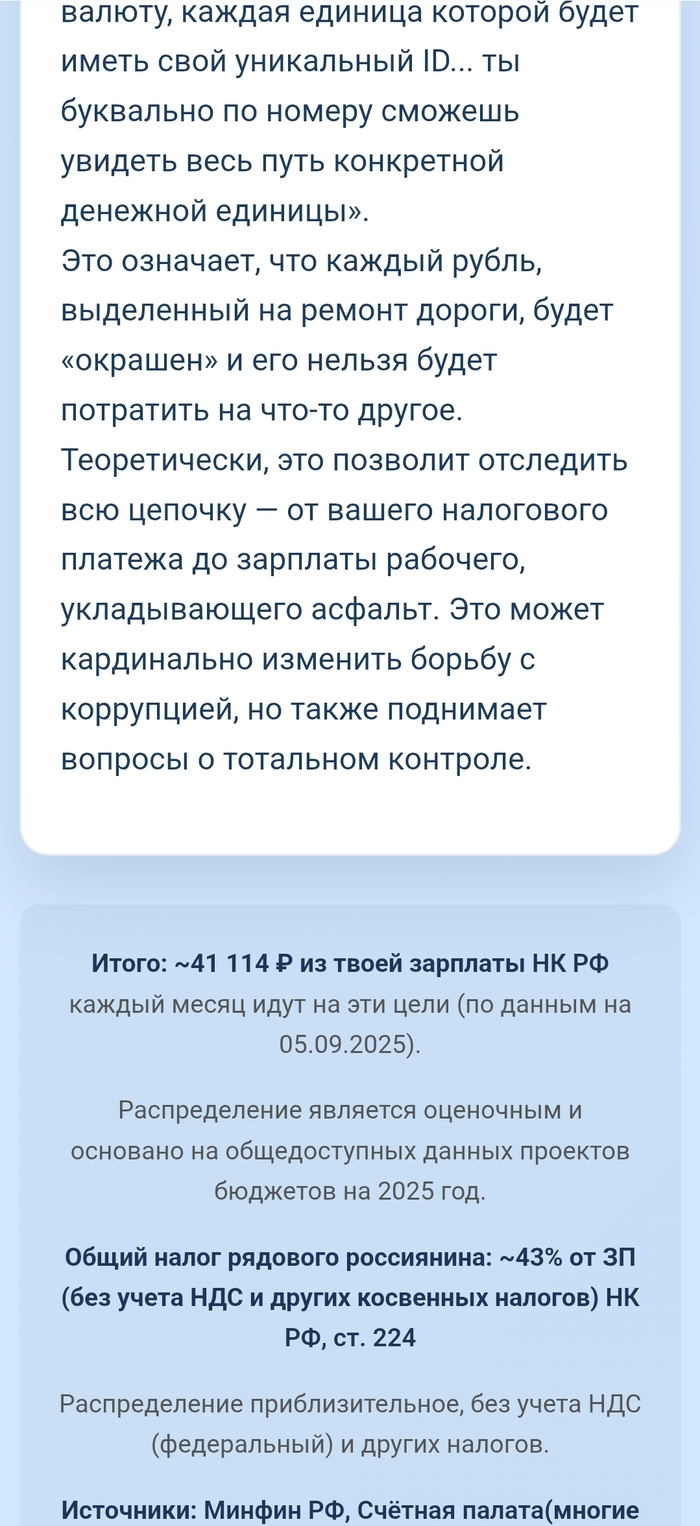 Есть ли существенные ошибки, помимо грубости расчётов? Наверное было бы здорово если можно было настраивать соотношение того кому отправятся налоги. Думаю с цифровым рублём постепенно и это появится в какой-то форме.