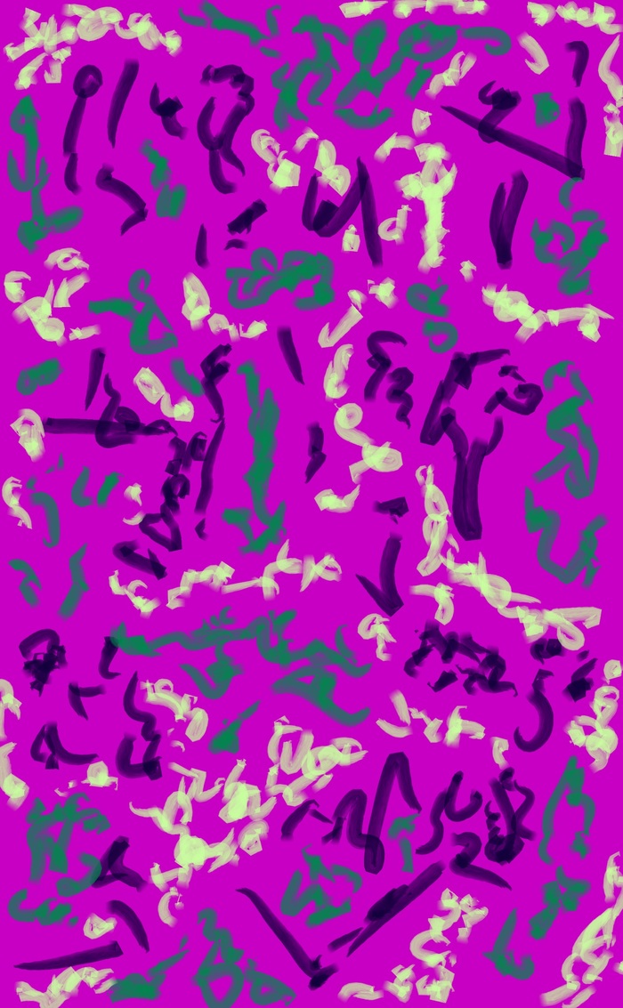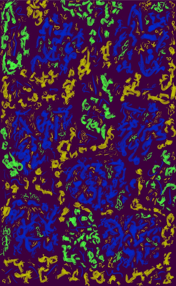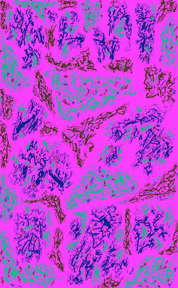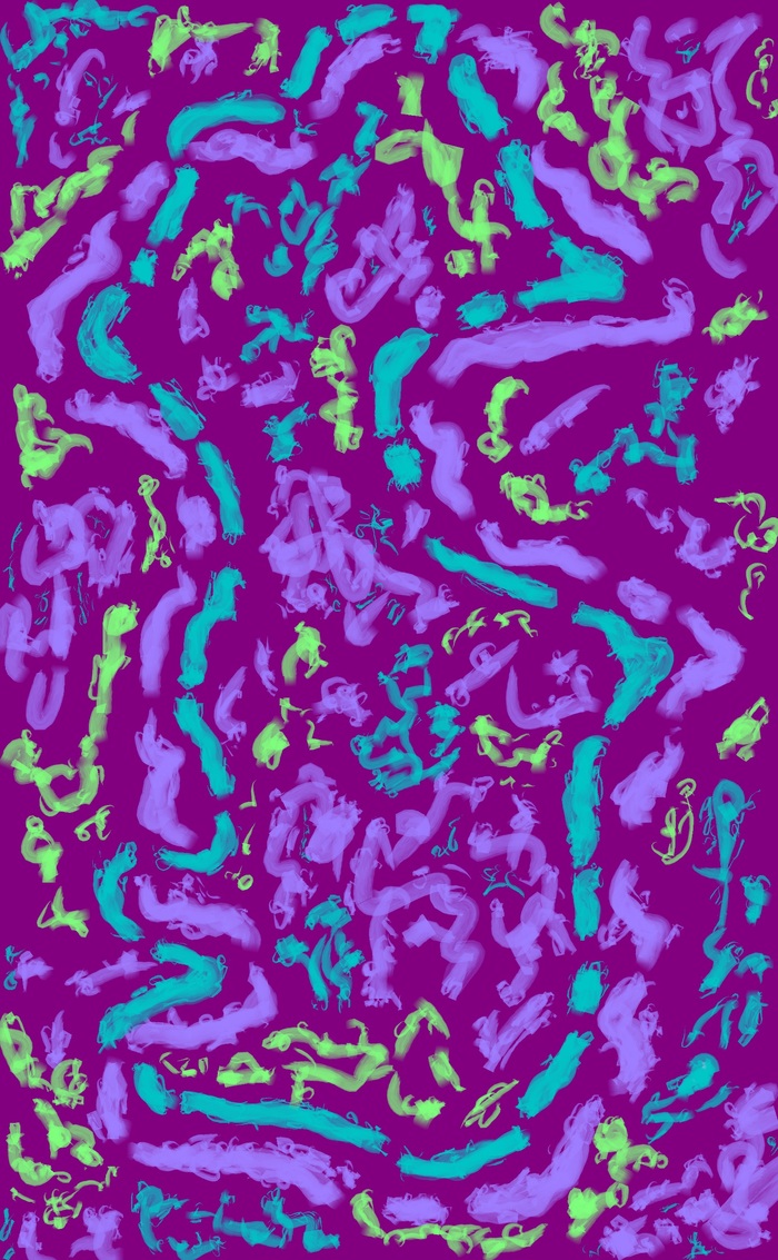 Цветной парейдолический дудл с фантастическими существами в элементах, двумерное растровое изображение; автор: Олег Мещеряков; графический редактор: Microsoft Paint.