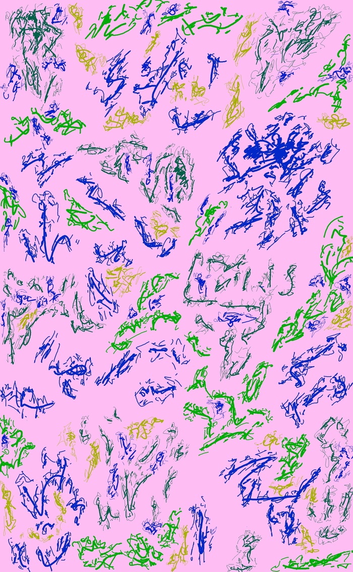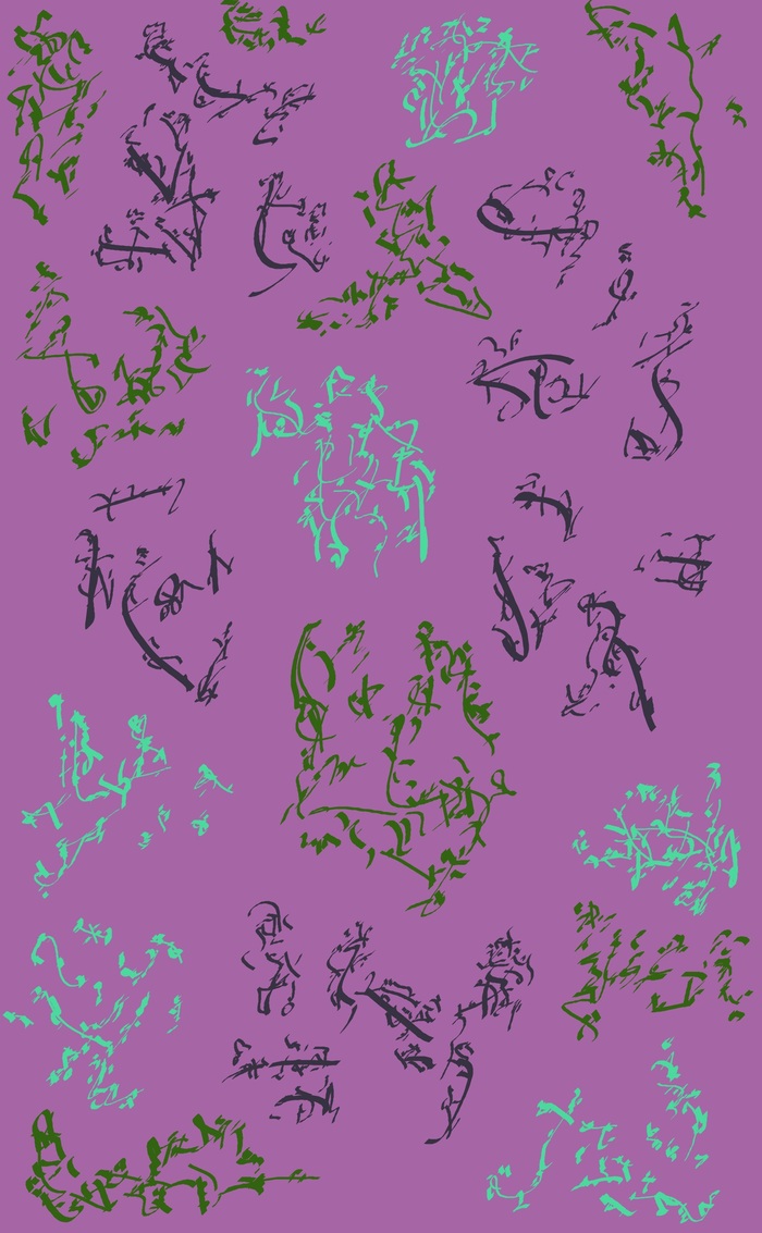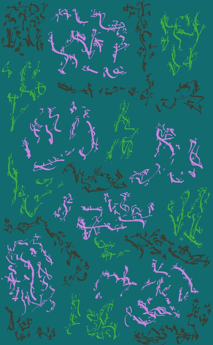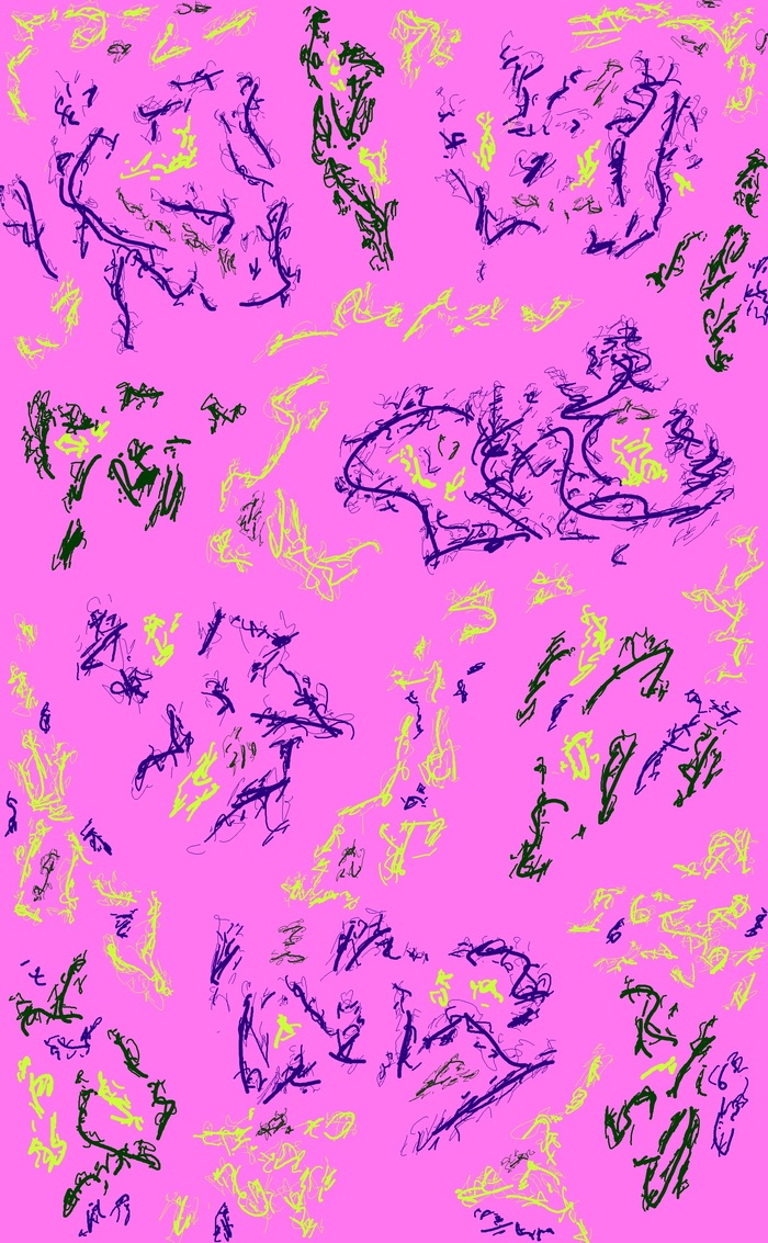 Цветной парейдолический дудл с фантастическими существами в элементах, двумерное растровое изображение; автор: Олег Мещеряков; графический редактор: Microsoft Paint.